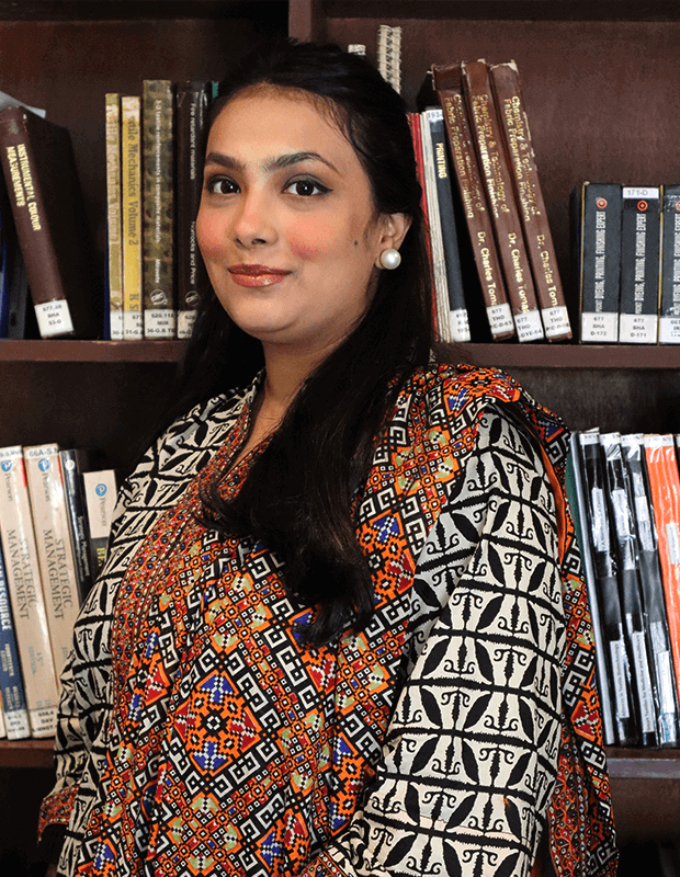Ms. Saadia Saad holds a Master’s in Design Marketing and Merchandising from the Asian Institute of Fashion Design (AIFD). With over a decade of academic and professional experience, she integrates design education with industry innovation and sustainable practice. Her teaching and leadership emphasize research-led design, curriculum development, and student–industry collaboration through projects with leading textile firms and exhibitions such as TEXPO and Karachi Biennale. A former product development manager and practicing designer, Saadia’s work bridges creative research and applied design. Her publications and international presentations reflect her focus on sustainability, cultural heritage, and contemporary textile innovation.